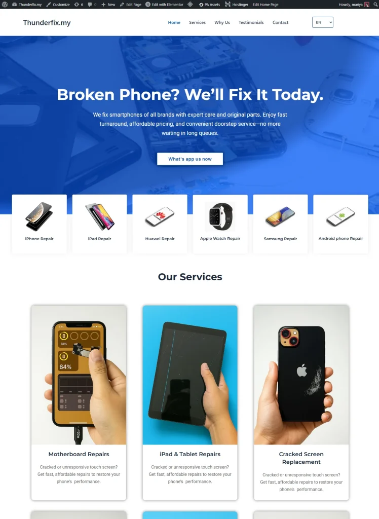 ThunderFix is ​​a modern, service-focused website created for a Malaysian company that specializes in smartphone repairs across all major brands.